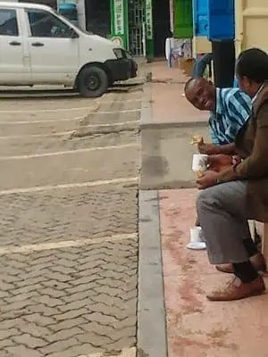 Without a bodyguard and a fuel guzzler he is seen around cheap Kayole hotels lonely and in deep thought.The man who dinned in top hotels is now taking cheap mandazi and tea as evident in the photos below.Was he mingling with the common man??Can’t tell!Laughs and humour.