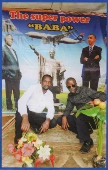 There are throwback photos but this one is in a class of it’s own. Back then when posing with plastic flowers was the in thing and camera phones were not as popular, Baba’s son had a photo taken of himself with a friend with a huge banner of the Super Power Baba in the back ground.