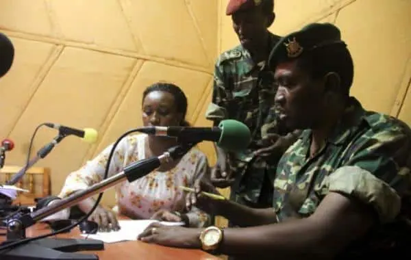 The Reuters witness said two private radio stations and a television station were attacked by unknown men in police uniforms. The two stations were among those that carried Major General Godefroid Niyombare’s announcement on Wednesday that he had sacked Nkurunziza.
