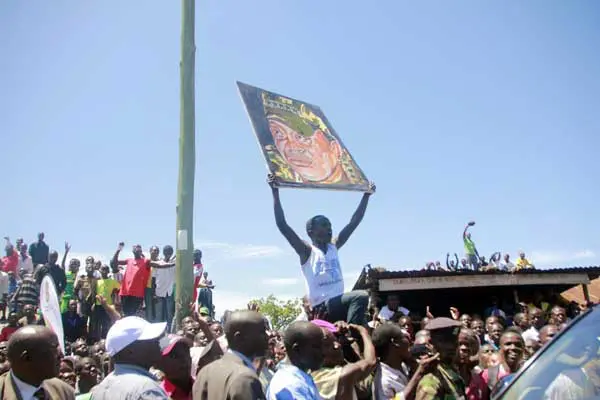 Holding the president’s portrait high, Mr Amunga began shouting Mr Kenyatta’s name and asking him to address them.