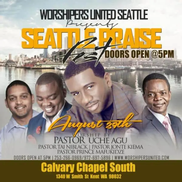 We would like to invite you to the first Seattle Praise Fest on Saturday 29th August 2015.The concert has been organized by Worshipers United.Worshipers United is a worship movement where people from different cultures, countries, languages gather to pursue the one true and living God relentlessly. Worshipers United started with 10 worship leaders in 2009 in Dallas TX, quickly grew into a fiery worship movement which has impacted over 500 worshipers. As a movement Worshipers United is igniting spiritual hunger, passion for Jesus and His manifest presence across America.