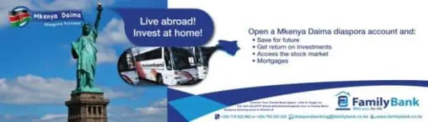 Tell: 443.492.9797 Email: jkfamilybank@gmail.com/ or Family Bank Diaspora banking team in Nairobi at +254714822962; email diasporabanking@familybank.cke.ke