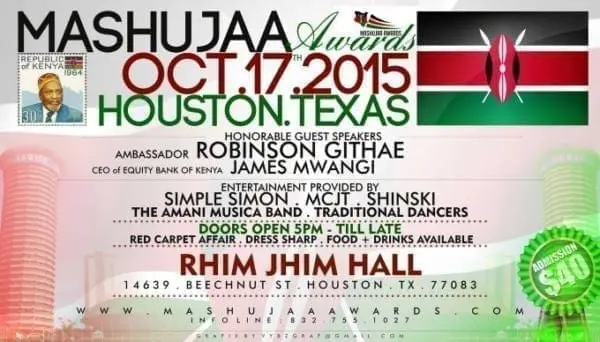 The 3rd Annual Mashujaa Awards Gala will be held on Saturday, October 17th, 2015 in Houston, Texas.