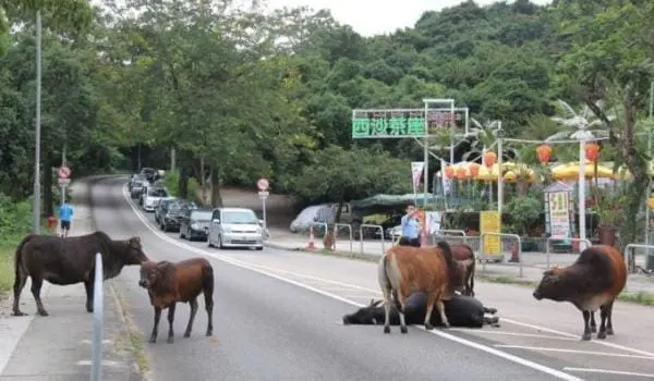 After seeing their companion getting hit by a car in Hong Kong, a herd of cattle refused to leave and chose to stay by its side.