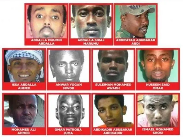 They are: Abdifatah Abubakar Abdi, alias Musa Muhajir, a man of Somali descent who lived in Mombasa before deportation to Somalia; Abdifatah Abubakar Abdi; Abdalla Muumin Abdalla; Suleiman Mohamed Awadh; Abdalla Siraj Marum; Mohamed Ali Ahmed; and Hussein Said Omar, alias Babli, the younger brother of fugitive Ahmed Said Omar, alias Dogo.