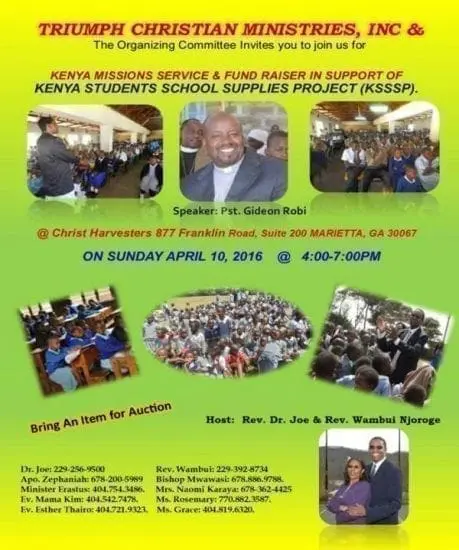 Save the date and join us at the Kenya Missions Service & Fundraiser in Atlanta, Georgia. Keywords: Supporting