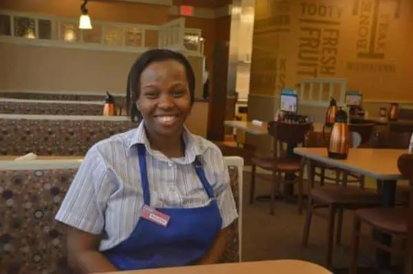While taking classes at UMKC, a typical day for Lusamukha began at 5:30 a.m. at IHOP for a full shift. After getting off in the early afternoon, she completed homework before her first class at 3 or 4 p.m. and then attended classes until as late as 10 p.m.