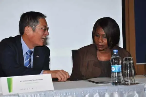 Left,_ H.E.Ambassador Tatsushi Terada, Embassy of Japan, Nairobi  _  Right_ Professor Judi Wakhungu, CS Ministry of Environment, Natural Resources and Regional Development Authorities, Nairobi