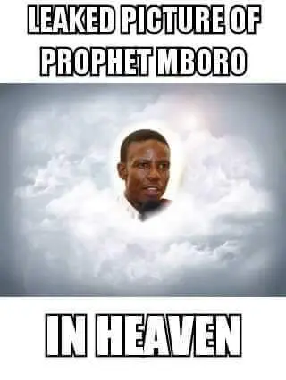 The prophet is known as Mboro, the leader of Incredible ministries. According to his spokesman, Prophet Mboro was ‘captured’ by angels during the Easter Sunday service, taken to heaven and came back that same day. The spokesman added that the pictures taken in heaven are available at a cost of 5,000 Rand (almost Sh.30,000) and can be sent to recipients via Whatsapp