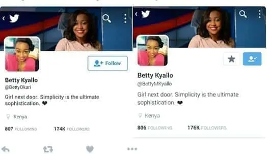 Since Friday when Betty changed her Twitter handle from @BettyOkari to @BettyMKyallo, Kenyans on Twitter have weighed in on the debate with the hashtag #BettyWedsDennistrending, as was the case when the two got married.