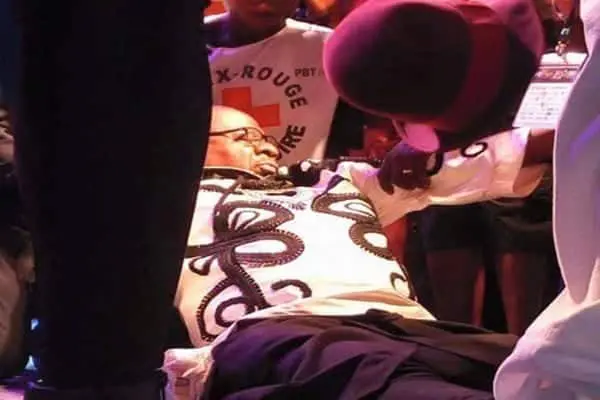 The musician whose real name was Jules Shungu Wembadio Pene Kikumba was performing at the the Festival des musiques urbaines d’Anoumabo (FEMUA) In Cote d’Ivore when he fell in the middle of his act.