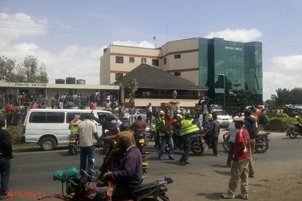 Raila receives hostile reception in Nakuru:Tension was high in Nakuru Town Saturday afternoon as rowdy youths started throwing stones around a hotel where opposition Cord leader Raila Odinga was holding a meeting with various leaders.