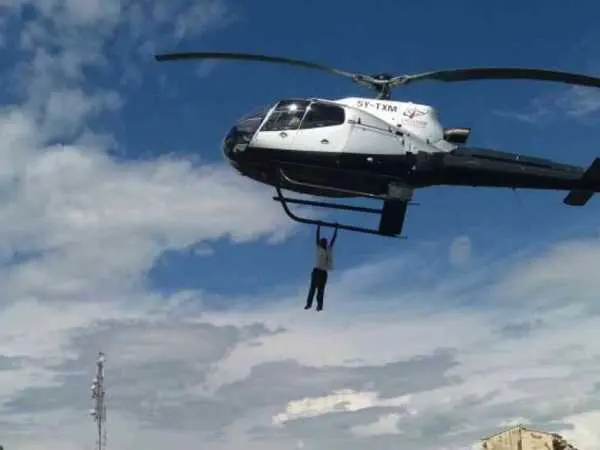 The man who hit headlines after hanging on airborne chopper in Bungoma during the body viewing of the slain businessman Jacob Juma in May will be flown in Nairobi with a return ticket.