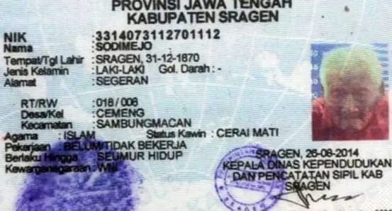 Staff at the Indonesian records office say they have confirmed Mbah’s birthdate, which is specified on his Indonesian ID card as December 31, 1870.