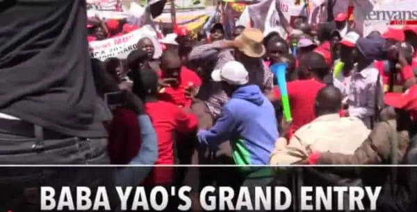 During the Jubilee Party Launch held at Kasarani, the man popularly referred to as ‘Baba Yao’ was in his usual element with a dramatic entry that soon turned chaotic.