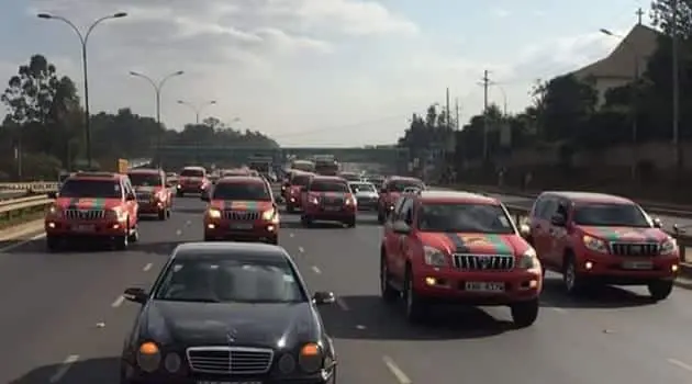 His comments came as social media became awash with photos showing tens of vehicles branded in Jubilee Party colours that were seen cruising around the city streets on Tuesday afternoon.
