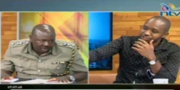 Human rights activist Boniface Mwangi on Wednesday morning entered into a heated confrontation with police Spokesperson Charles Owino on NTV ‘s morning show, AM Live.