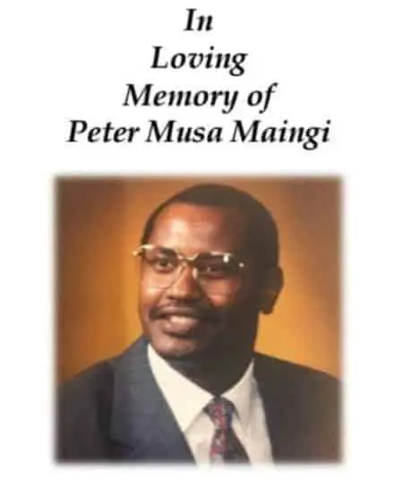 We are saddened by the death of Peter Maingi of Tacoma Washington. Peter passed away on 1/2/2017. He was the son of the late Joshua Maingi and Rebecca Maingi of Makueni Kenya. Husband to Georgina Maingi. Father to Pete Maingi, Jolene Maingi, and Joyice Maingi.