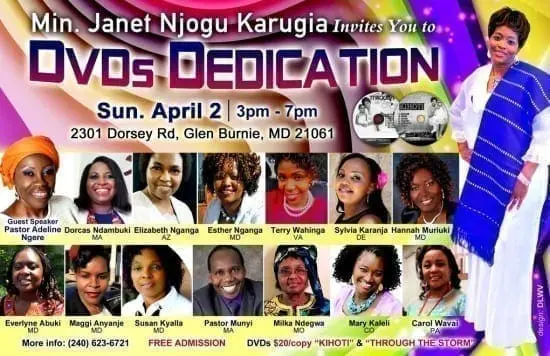 Other guests include: Dorcas Ndambuki (MA), Elizabeth Nganga (AZ), Esther Nganga (MD), Terry Wahinga (VA), Sylvia Karanja (DE), Hannah Muriuki (MD), Everlyne Abuki (MD), Maggi Anyanje (MD), Susan Kyalla (MD), Pastor Munyi (MA), Milka Ndegwa (MO), Mary Kaleli (CO), and Carol Wavai (PA).
