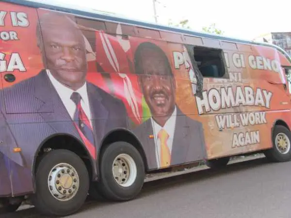 The bus, branded in orange colour and bearing Wakiaga and ODM leader Raila Odinga’s portraits, has been traversing the county with a section of youth leaders ahead of the April 19 party nominations.