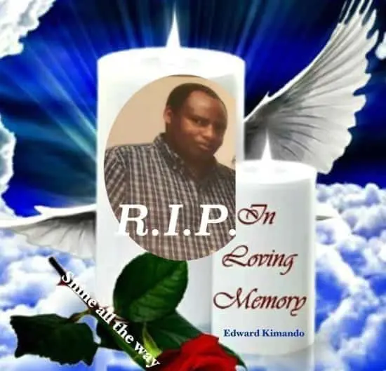 It is with great sadness that we announce the sudden death of Edward Kimando (Baba Ian). He was husband to Salome Kimani of Calvary Evangelical Church, father to Ian Kiuna (Pcea Imani), Faith Kiuna & Mercy Kiuna. Son of Samuel Kimando & Jane Nyambura of Uplands Kenya. Son-in-law to Geoffrey Gìtua & Sarah Kimani (Dada Sarah) of Pcea Neema church Lowell. Brother in law to Mary Kimani (Hairdresser) & John Micheal (Tush) of Christian Community Fellowship (CCF) Lowell among others. Prayers will be held daily at their residence 64 WEED ST, LOWELL MA  Daily from 7pm starting tonight for funeral arrangements and sending the body back home to Kenya.