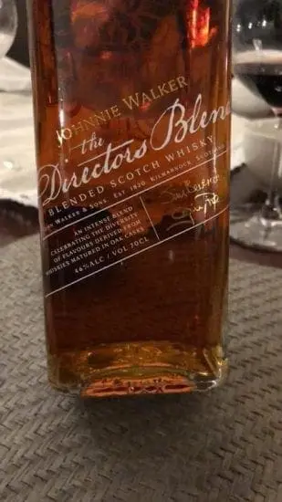 It is revealed, The Johnie walker director blend is best served directly from the freezer and has notes of caramelised sugar and vanilla, fresh red berries with a touch of orchard fruit .