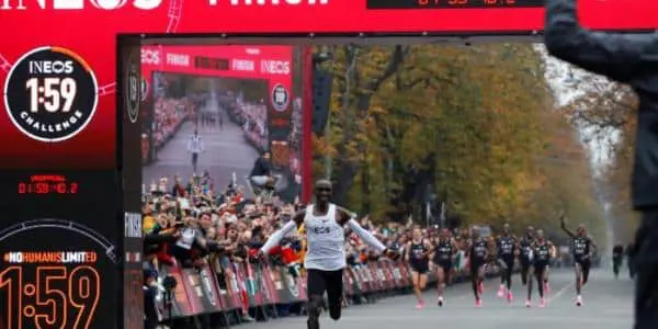 “He hit the 21km mark in 59:35, giving him some breathing room for reaching the two-hour goal, with most of his kilometre splits not wavering between 2:48 to 2:52 per kilometer—from 33km to 40km, he hit 2:50 exactly for every split,” they analyzed.