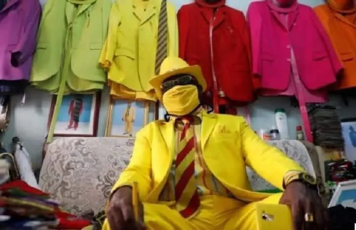 Those were men’s colours,” he told Reuters while wearing a bright yellow suit with matching hat and face mask. “God gave me wisdom and showed me all the different colours I can wear to be different from everybody else.”