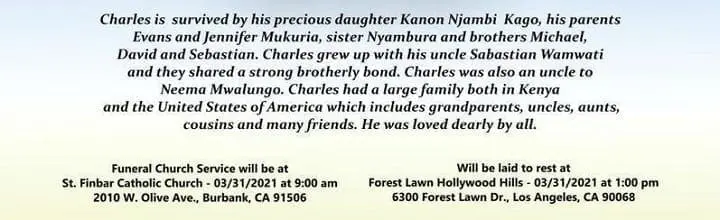 The Family of Evans Mukuria are sad to announce the sudden death of our Son, Brother and Father who was promoted to glory on 2/23/21.