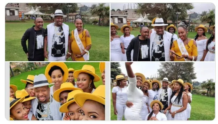 From the photos he shared, the colour theme for the baby shower was all white; women wore white outfits and mustard hats white, the mother to be dressed in a mustard dress.