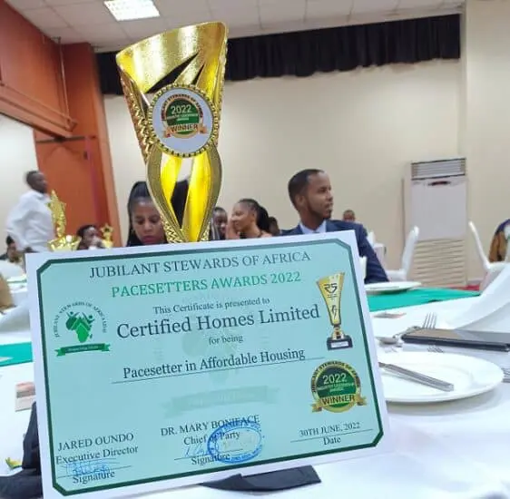 Certified Homes your most trusted and reliable real estate developer as well as land selling company was recognised by being awarded during the annual pacesetters awards gala at Panari Hotel Nairobi.