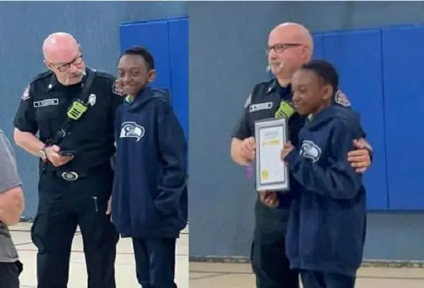 Officers drawn from the department surprised Roy Ngunjiri at Forest Park Adventist Christian School based in Everett, Washington to present him with a life-saving recognition award.