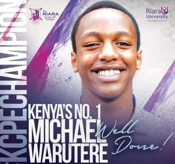 According to the agency, Warutere deserves all the recognition and praise for putting his school, Riara Springs Academy, on the national map.