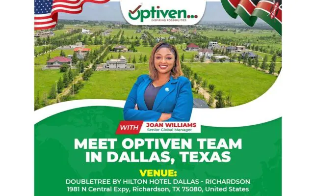 DALLAS, TEXAS — THE OPTIVEN EXPERIENCE IS HERE! Kenyan diaspora families, investors, and friends in the United States have a special opportunity to connect directly with Optiven, one of Kenya’s most trusted real estate brands. The Optiven Diaspora team has officially arrived in Dallas, Texas, bringing personalized investment guidance right to your doorstep.