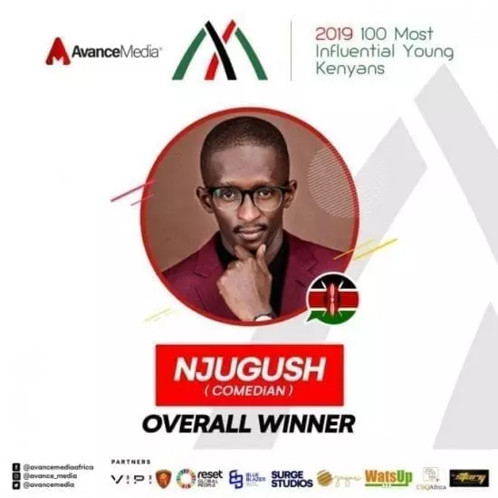 The ranking of 100 young extraordinary young Kenyans which also features 56 females makes Comedian Njugush the 3rd winner of the prestigious title after Daniel Churchill Ndambuki (2016) and Dr Darshan Chandaria (2018).