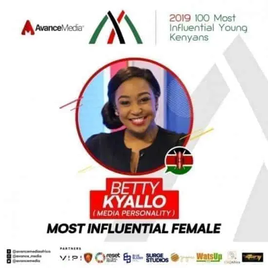 Known for being a funny guy who cracks the ribs of his fans every time he goes on air, Njugush has built a remarkable career for himself through social media which he uses as a platform to publish contents. In 2018, he was also voted among the 100 Most Influential Young Kenyans. Media personality and host of #WeekendWithBetty on K24 TV, Betty Kyallo was also voted the Most Influential Female on the ranking.